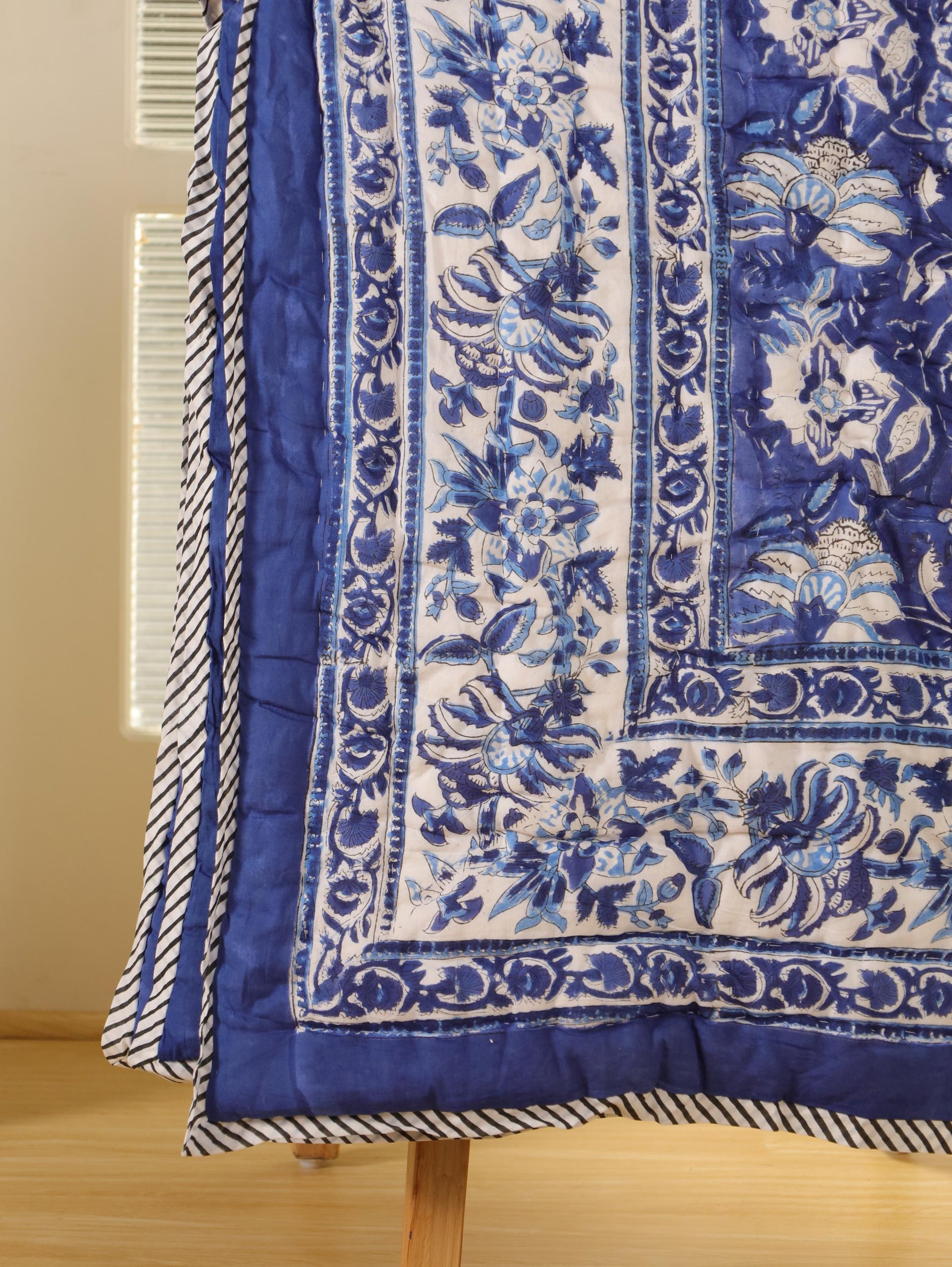 Materials and Craftsmanship: Our quilts are made from 100% premium cotton, known for its softness, breathability, and durability. We ensure that every quilt not only feels luxurious against your skin but also stands the test of time. Each piece is adorned with hand block prints, a traditional technique where skilled artisans in Sanganer use hand-carved wooden blocks to apply intricate patterns. This meticulous process results in unique designs that add a touch of elegance and artistry to each quilt.
