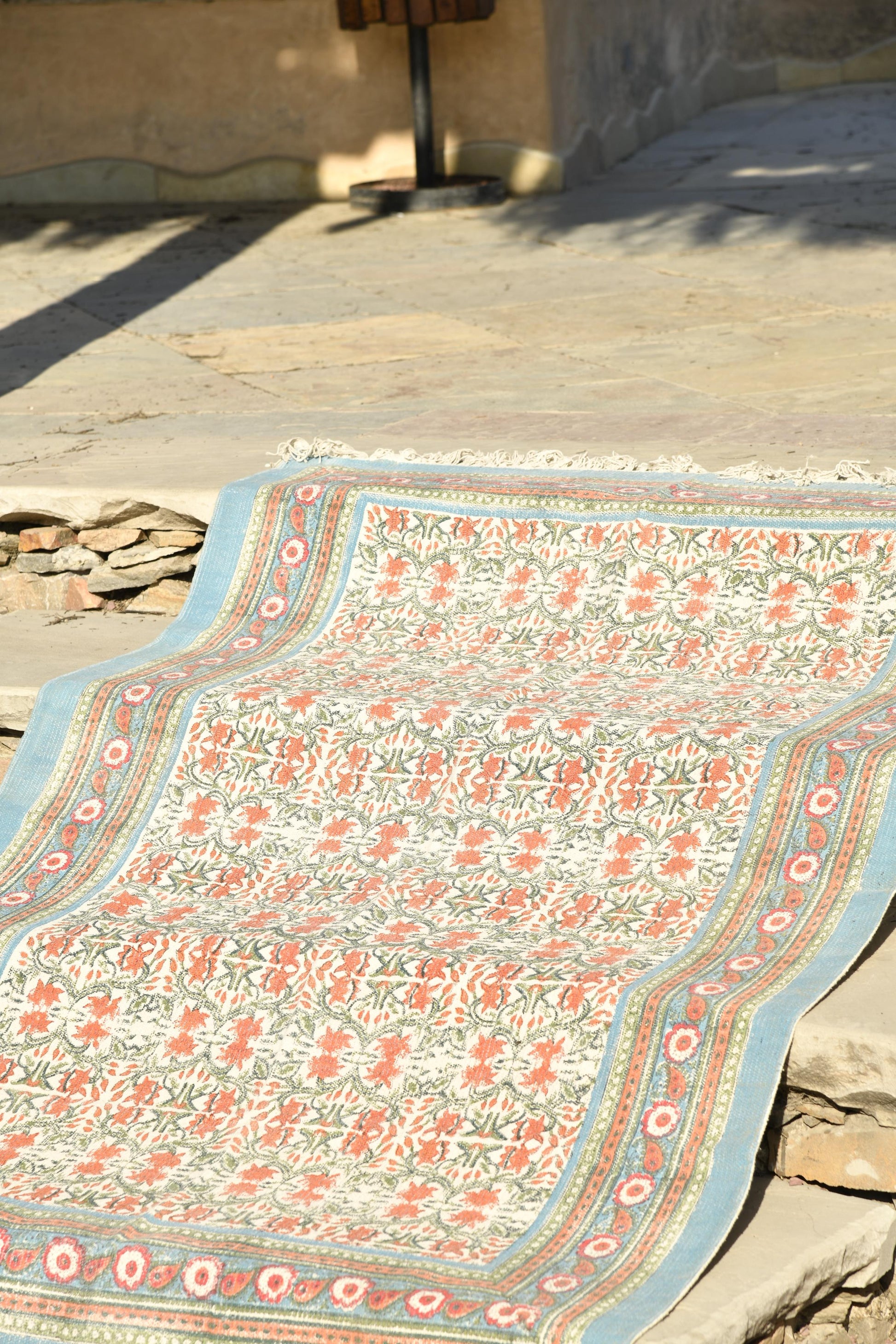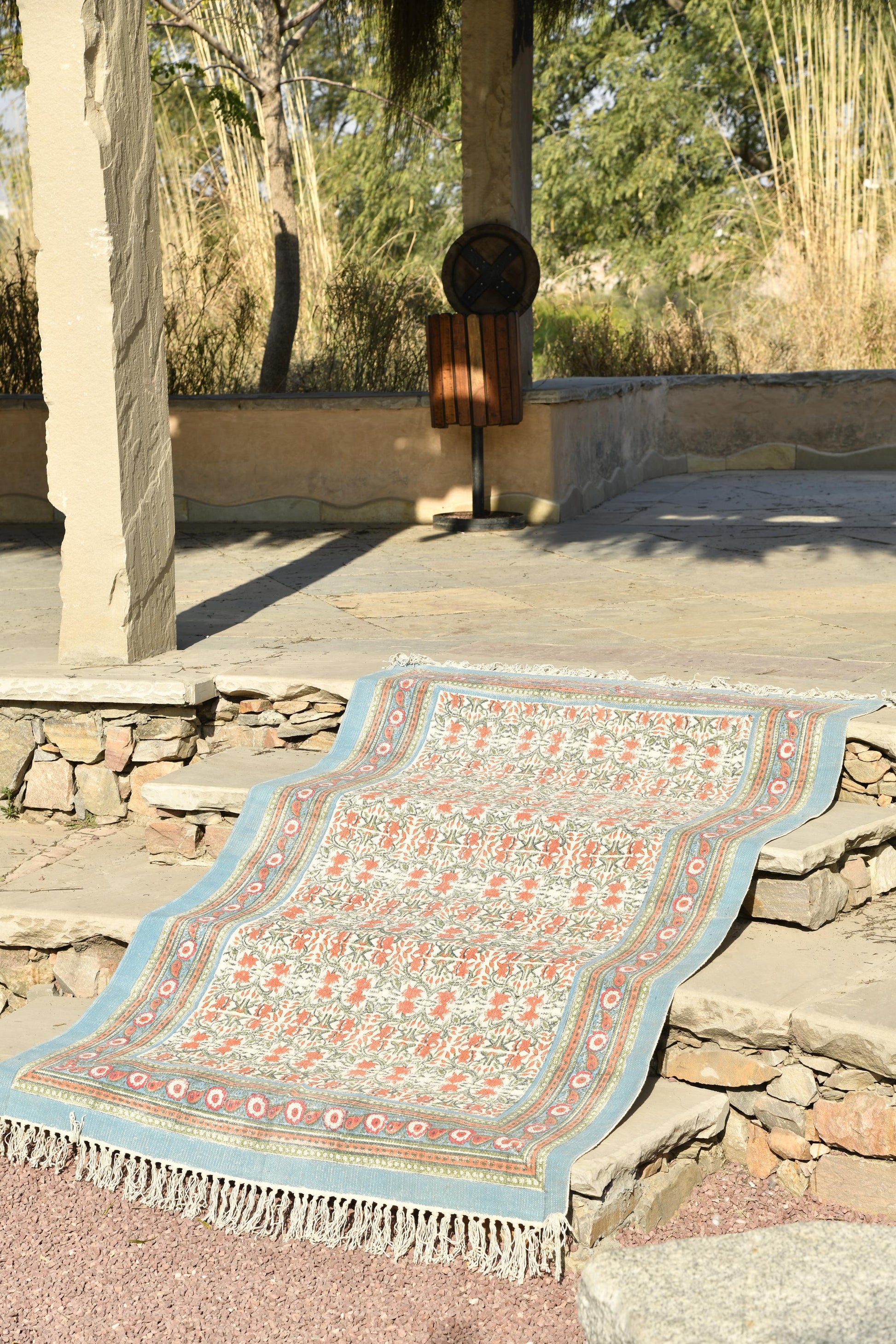 Handcrafted Excellence: Each rug is hand-block printed using traditional methods, creating distinct patterns and colors that reflect the artistry and craftsmanship of the maker